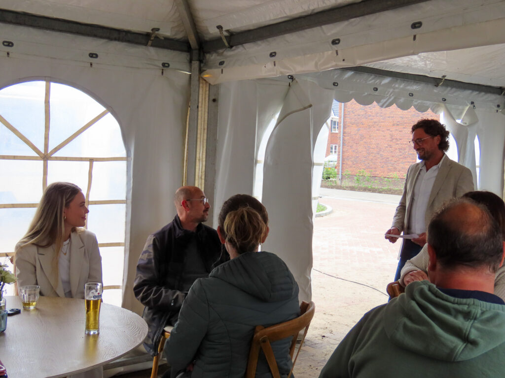 Directeur-bestuurder Erik Cuppen sprak de aanwezigen kort toe. Als cadeau gaven we alle huurders een regenton (met installatie) cadeau. Zo is niet alleen het huis straks heel duurzaam, maar de tuin ook!